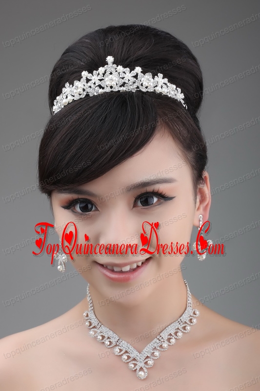 Tiara and Necklace in Luxurious Pearl and Alloy