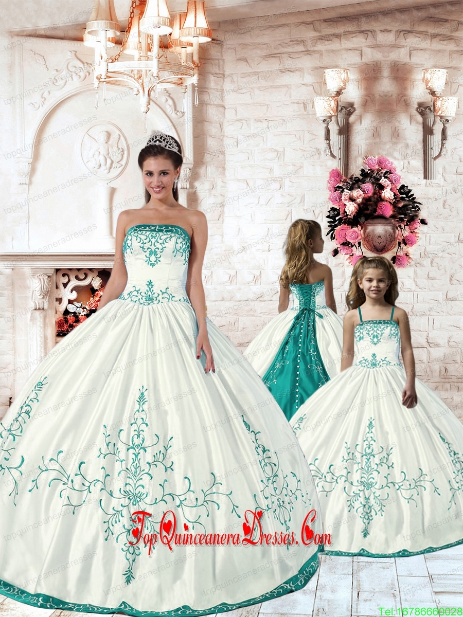 Top Seller White Princesita Dress with Turquoise Embroidery