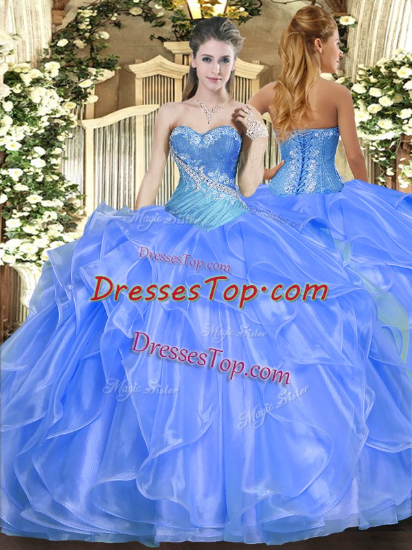 Top Selling Baby Blue Sweetheart Neckline Beading and Ruffles Vestidos de Quinceanera Sleeveless Lace Up