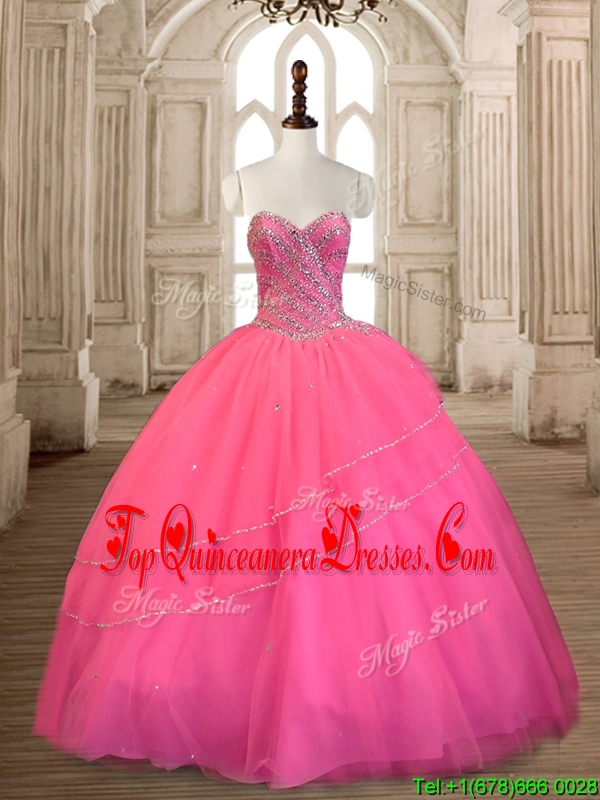 Top Selling Beaded Tulle Sweet 16 Dress in Rose Pink