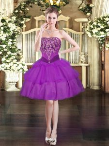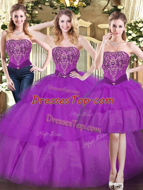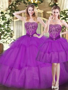 Top Selling Eggplant Purple Sleeveless Floor Length Beading and Ruffled Layers Lace Up Vestidos de Quinceanera