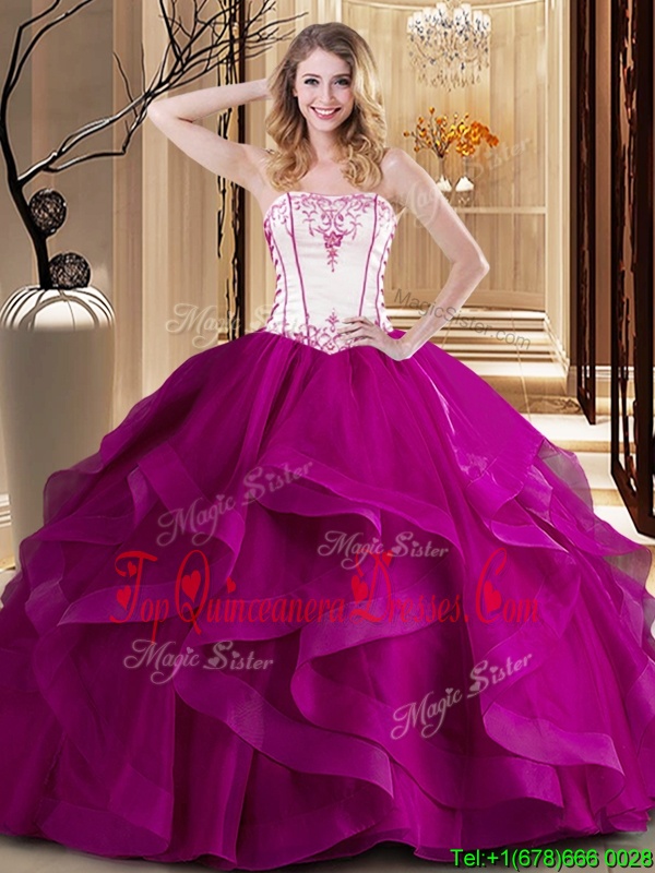 Top Selling Floor Length Ball Gowns Sleeveless Fuchsia Quinceanera Gowns Lace Up