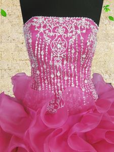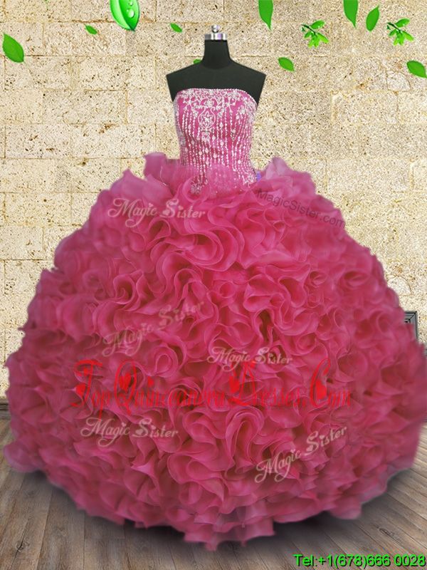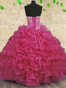 Top Selling Hot Pink Sleeveless Floor Length Beading and Ruffles Lace Up 15th Birthday Dress