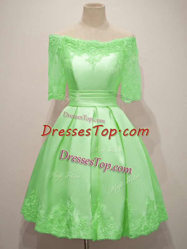 Top Selling Lace Up Off The Shoulder Lace Vestidos de Damas Taffeta Half Sleeves