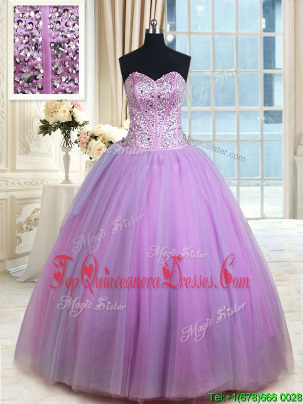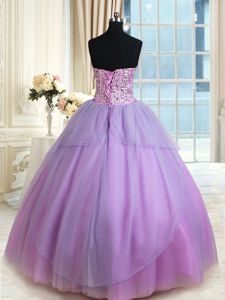 Top Selling Lavender Ball Gowns Tulle Sweetheart Sleeveless Beading Floor Length Lace Up Quinceanera Dress