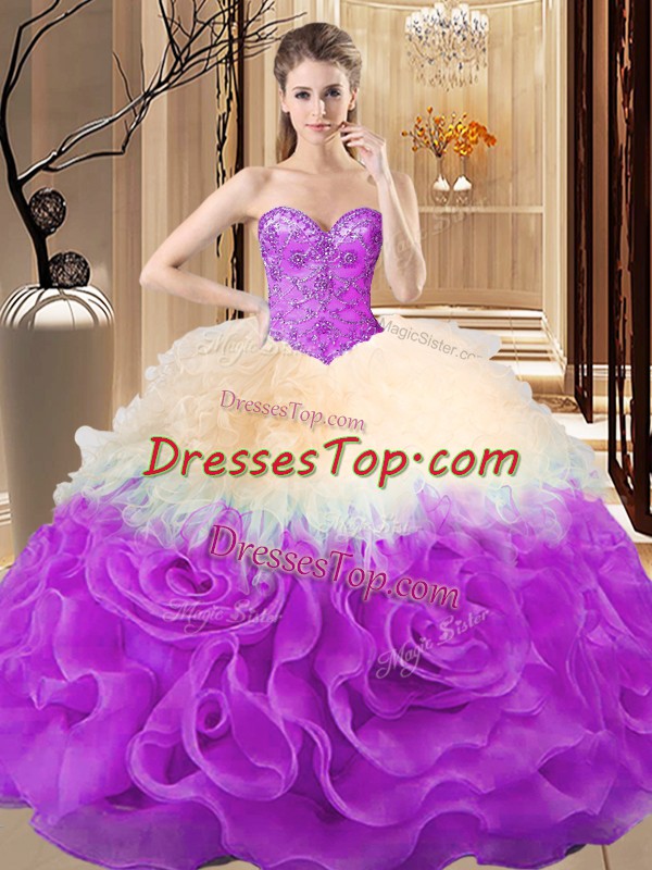 Top Selling Multi-color Sweetheart Neckline Beading and Ruffles Vestidos de Quinceanera Sleeveless Lace Up