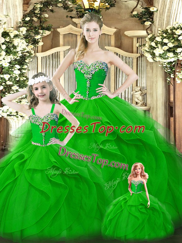 Top Selling Organza Sleeveless Floor Length Sweet 16 Dresses and Beading and Ruffles