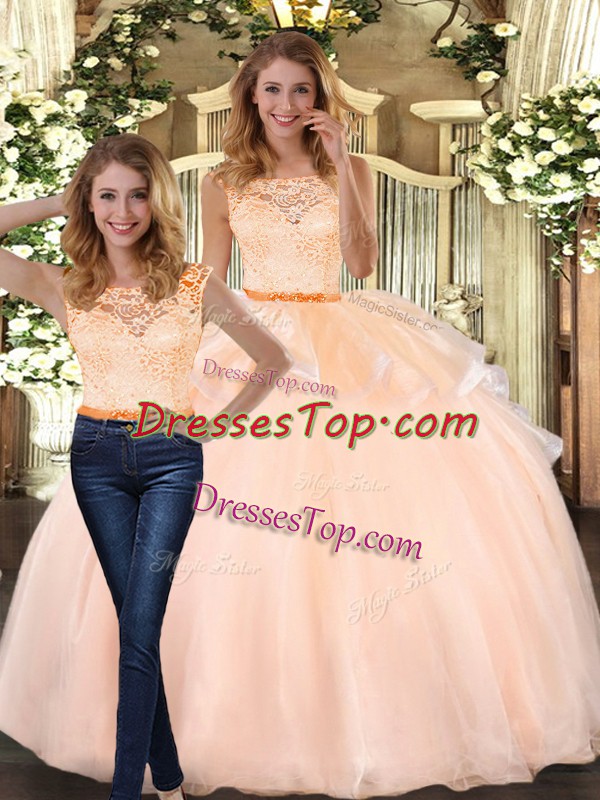 Top Selling Scoop Sleeveless Organza Quinceanera Gown Lace Zipper