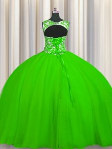 Top Selling Scoop Sleeveless Tulle Quinceanera Dress Beading Lace Up