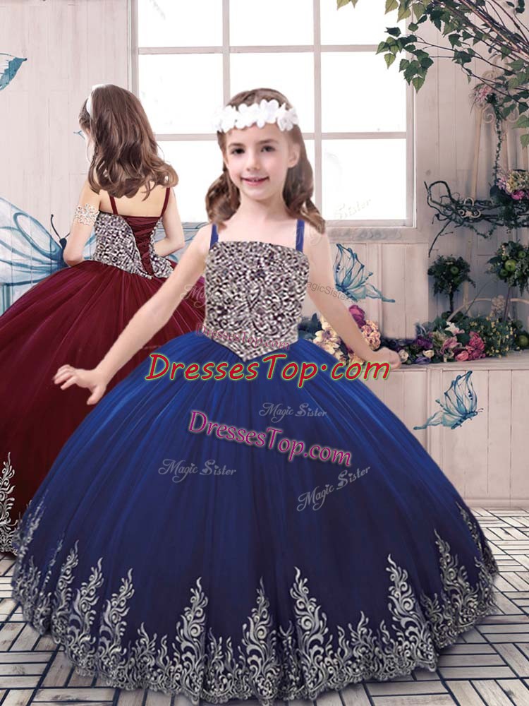 Top Selling Sleeveless Beading and Embroidery Lace Up Kids Formal Wear