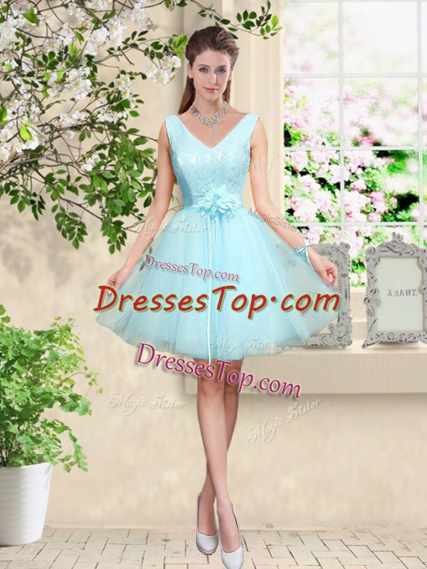 Top Selling Sleeveless Lace Up Knee Length Lace and Belt Court Dresses for Sweet 16