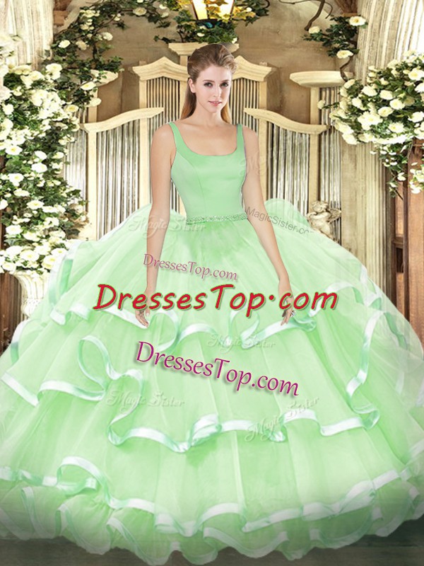 Top Selling Straps Sleeveless Zipper Ball Gown Prom Dress Apple Green Organza