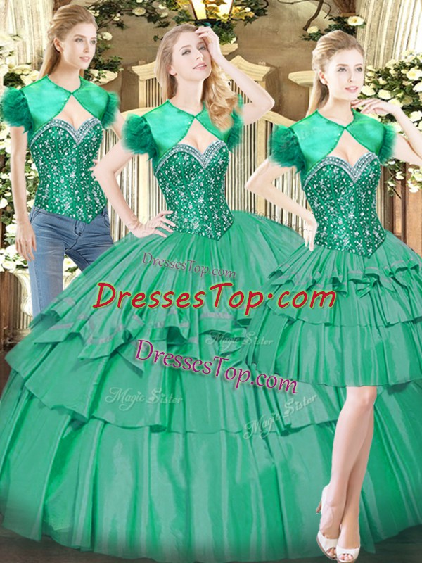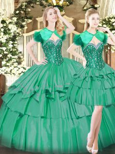 Top Selling Turquoise Lace Up Ball Gown Prom Dress Beading and Ruffled Layers Sleeveless Floor Length
