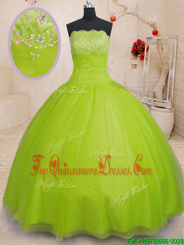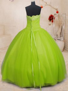 Top Selling Yellow Green Tulle Lace Up Quinceanera Dress Sleeveless Floor Length Beading
