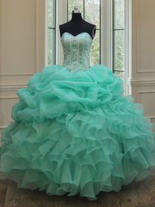 Traditional Apple Green Sleeveless Floor Length Beading and Ruffles Lace Up Sweet 16 Quinceanera Dress