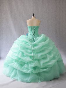 Traditional Ball Gowns 15 Quinceanera Dress Apple Green Sweetheart Organza Sleeveless Floor Length Lace Up