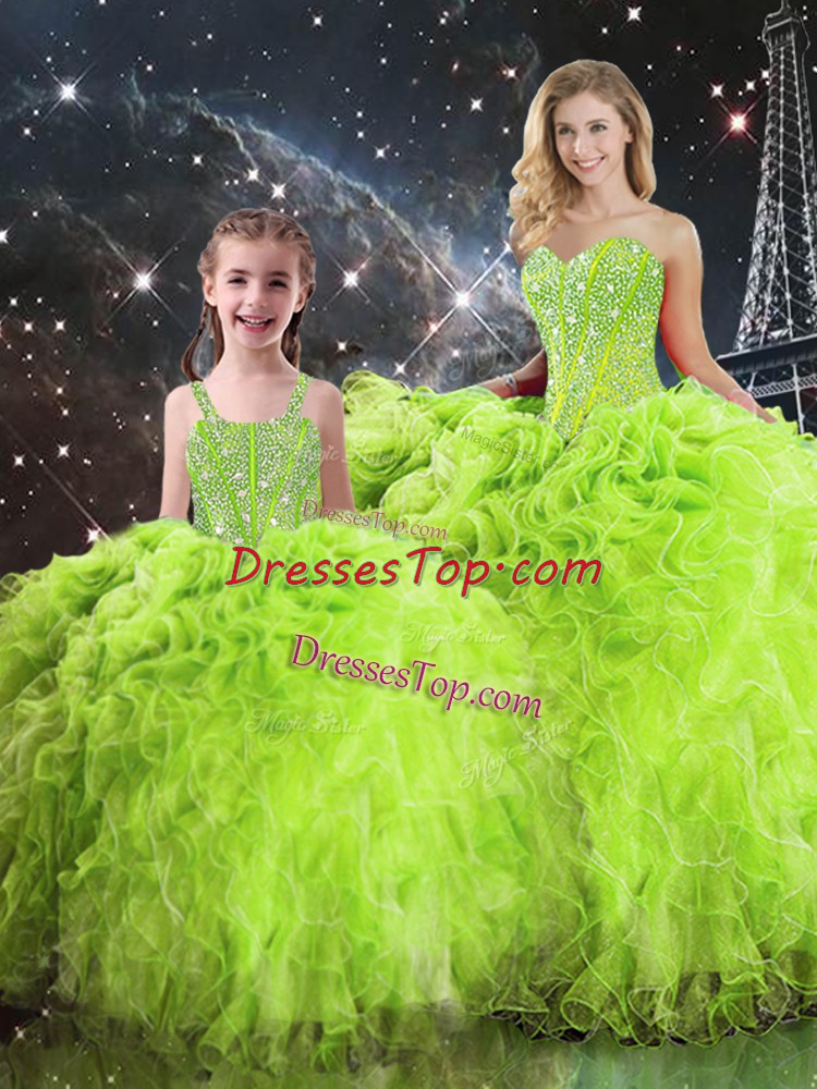 Traditional Ball Gowns Beading and Ruffles Sweet 16 Quinceanera Dress Lace Up Organza Sleeveless Floor Length