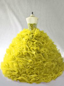 Traditional Beading and Ruffles Sweet 16 Dresses Olive Green Lace Up Sleeveless Brush Train