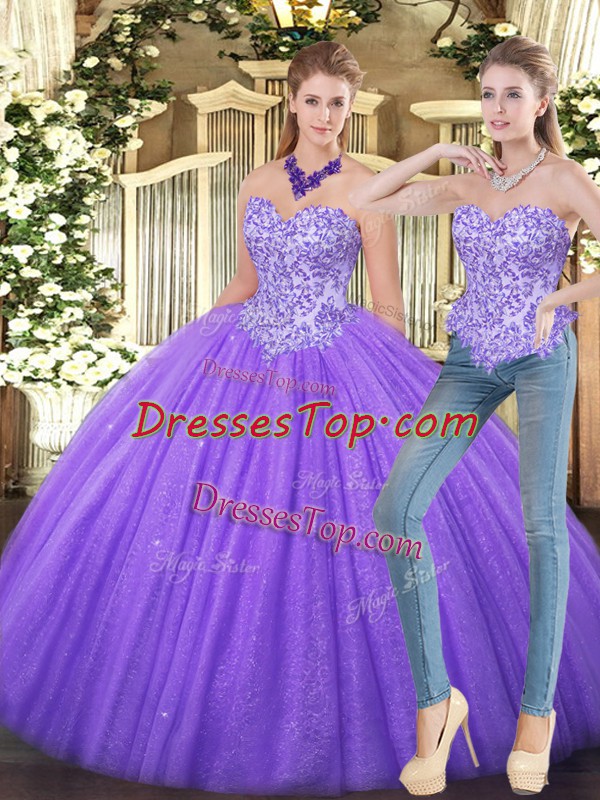 Traditional Eggplant Purple Tulle Zipper 15 Quinceanera Dress Sleeveless Floor Length Appliques