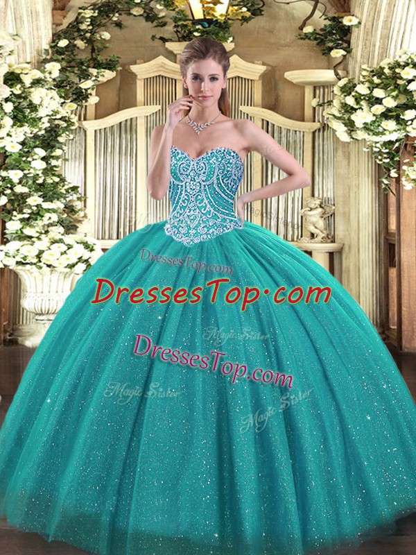 Traditional Floor Length Ball Gowns Sleeveless Turquoise Vestidos de Quinceanera Lace Up