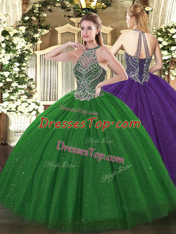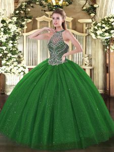 Traditional Green Lace Up Ball Gown Prom Dress Beading Sleeveless Floor Length