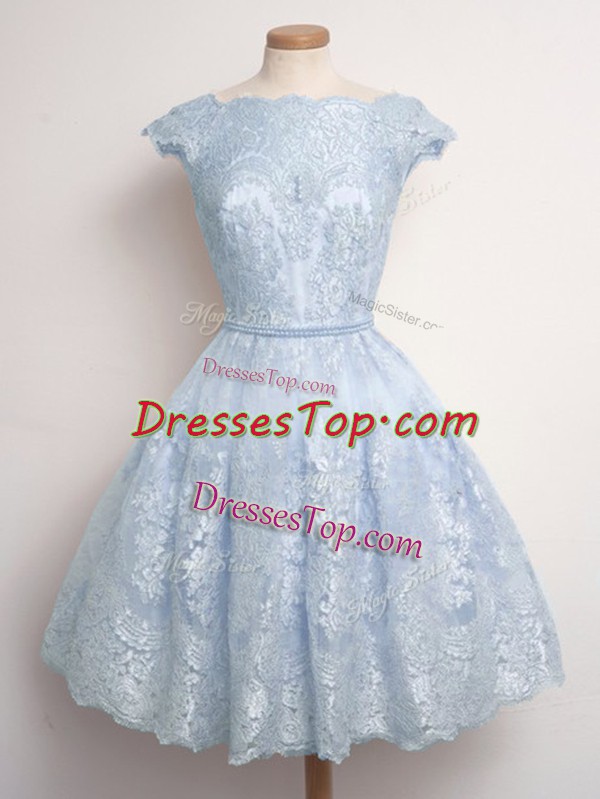 Traditional Lace Cap Sleeves Knee Length Quinceanera Dama Dress and Lace