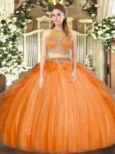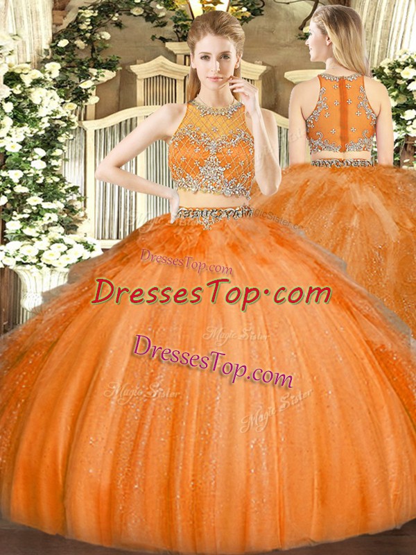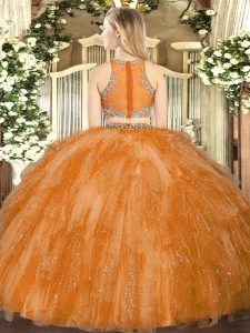 Traditional Orange Scoop Neckline Beading 15th Birthday Dress Sleeveless Zipper