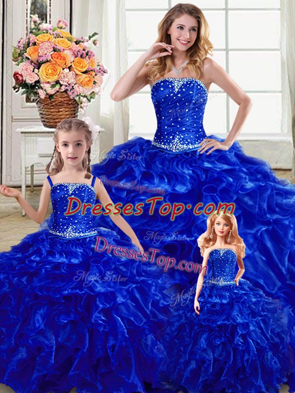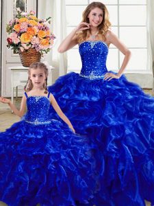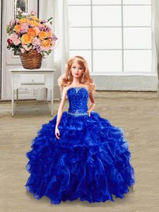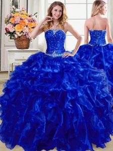 Traditional Royal Blue Sleeveless Organza Lace Up 15 Quinceanera Dress for Military Ball and Sweet 16 and Quinceanera