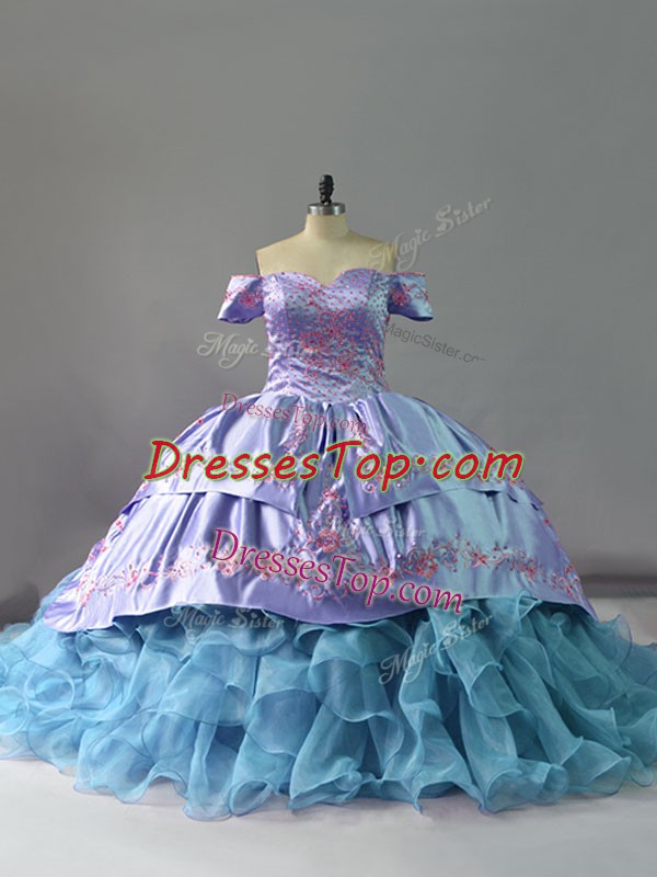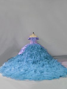 Traditional Ruffles Sweet 16 Dress Blue Lace Up Sleeveless Chapel Train