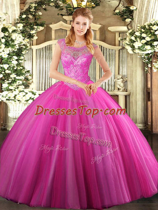 Traditional Tulle Sleeveless Floor Length 15 Quinceanera Dress and Beading