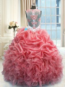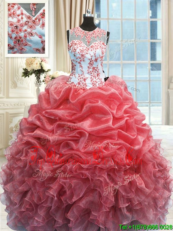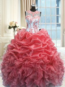 Traditional Watermelon Red Scoop Zipper Beading and Ruffles Sweet 16 Dresses Sleeveless