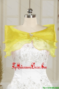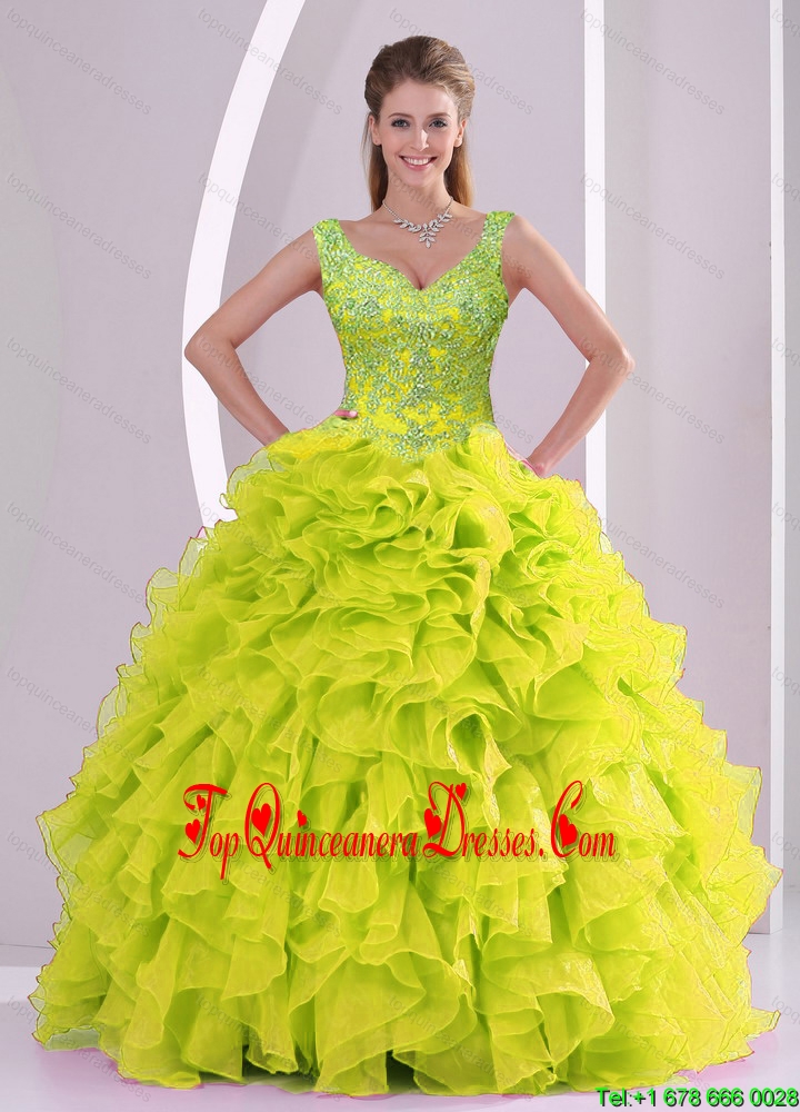 Trendy Beading and Ruffles Yellow Green Quince Dresses for 2015