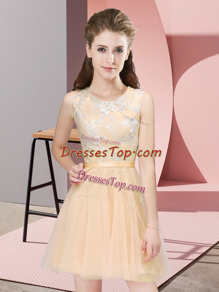 Trendy Champagne Side Zipper Quinceanera Court Dresses Lace Sleeveless Mini Length
