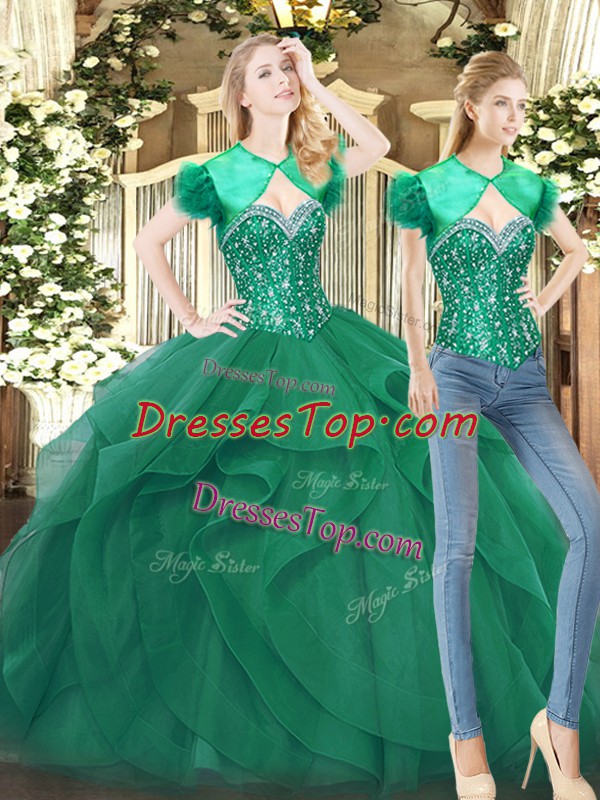 Trendy Dark Green Sleeveless Tulle Lace Up Sweet 16 Quinceanera Dress for Military Ball and Sweet 16 and Quinceanera