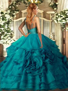 Trendy Fabric With Rolling Flowers Sleeveless Floor Length Sweet 16 Quinceanera Dress and Ruffles