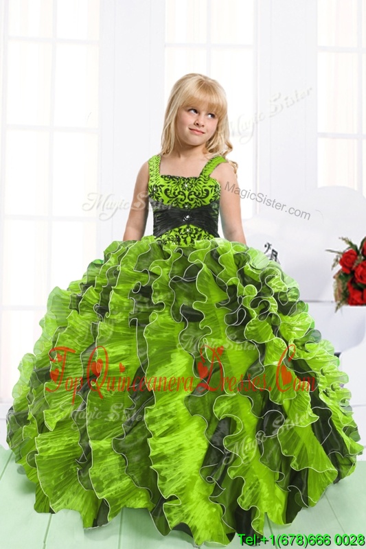 Trendy Floor Length Yellow Green Little Girls Pageant Dress Wholesale Straps Sleeveless Lace Up