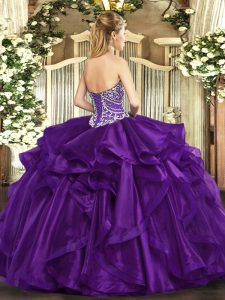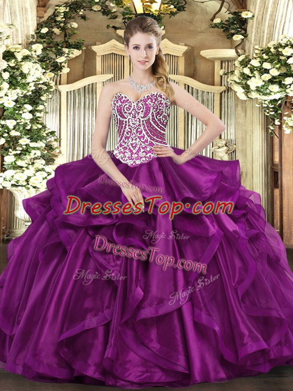 Trendy Fuchsia Ball Gown Prom Dress Military Ball and Sweet 16 and Quinceanera with Beading and Ruffles Sweetheart Sleeveless Lace Up