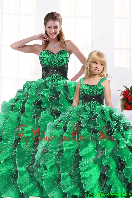 Trendy Green Lace Up Quinceanera Gowns Beading and Appliques and Ruffles Sleeveless Floor Length