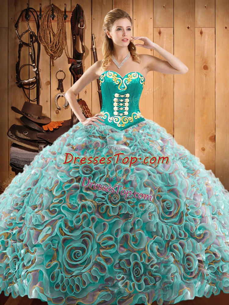 Trendy Multi-color Quinceanera Gown Military Ball and Sweet 16 and Quinceanera with Embroidery Sweetheart Sleeveless Sweep Train Lace Up