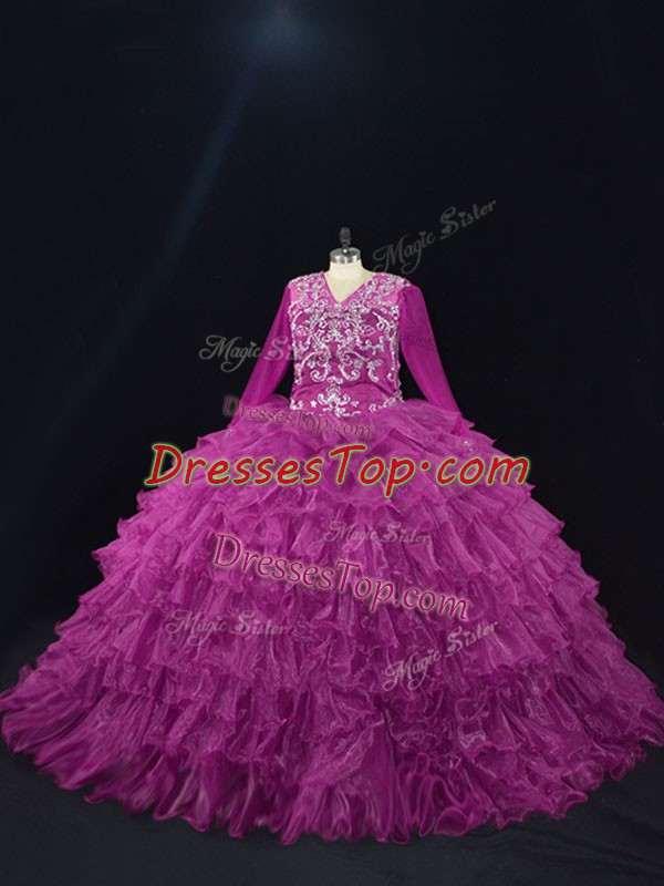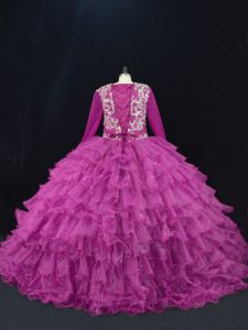 Trendy Organza Long Sleeves Floor Length Sweet 16 Quinceanera Dress and Beading and Ruffled Layers