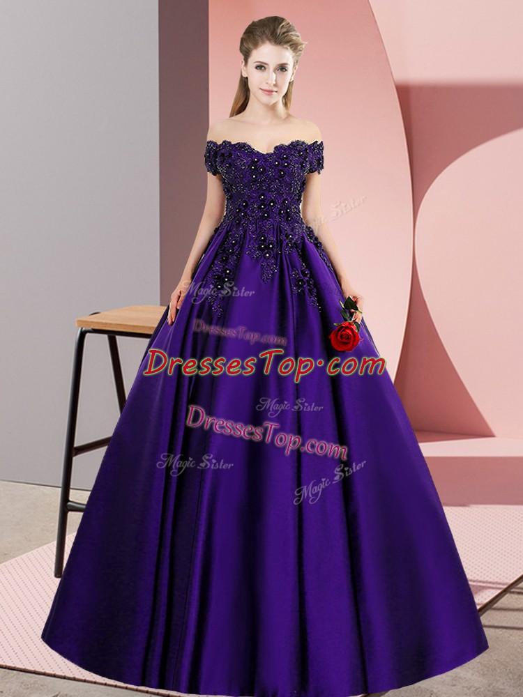 Trendy Purple Sleeveless Satin Zipper Quince Ball Gowns for Party and Sweet 16 and Wedding Party
