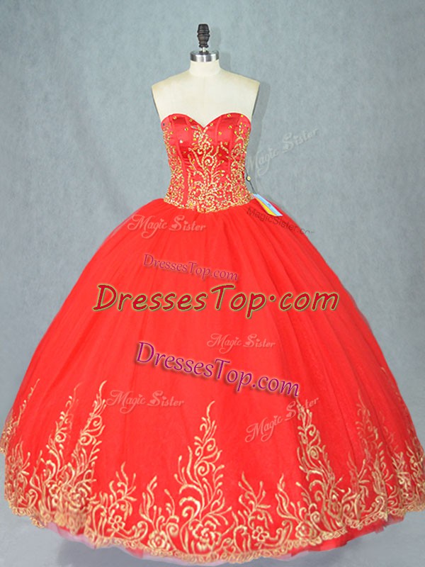 Trendy Red Sweetheart Neckline Beading Quinceanera Dresses Sleeveless Lace Up