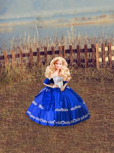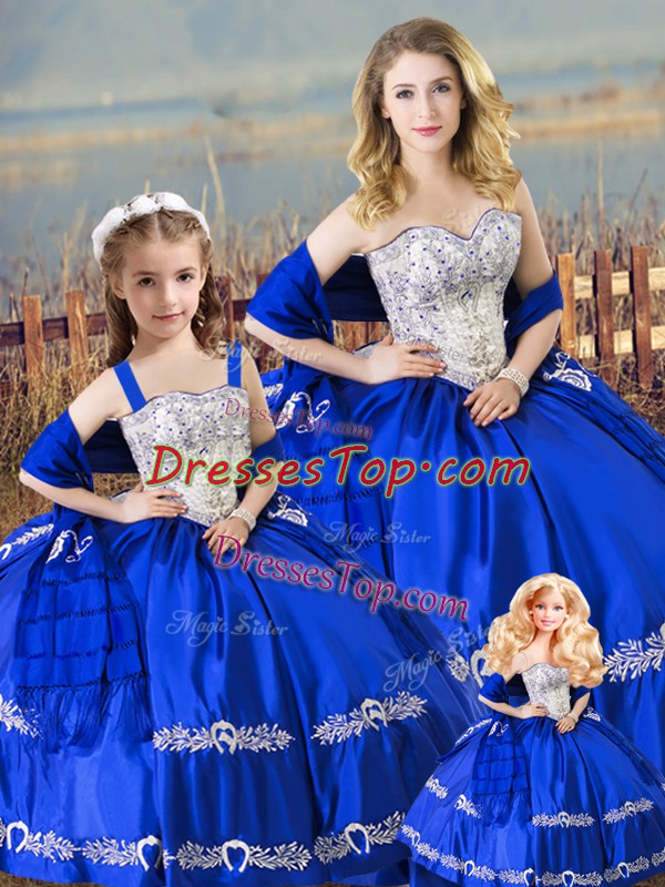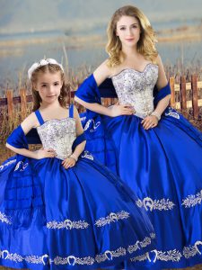 Trendy Royal Blue Satin Lace Up 15th Birthday Dress Sleeveless Floor Length Beading and Embroidery