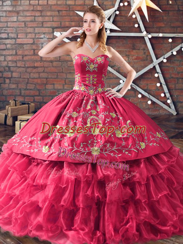 Trendy Sleeveless Lace Up Floor Length Embroidery and Ruffled Layers Quinceanera Gown