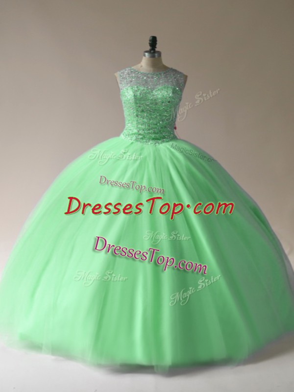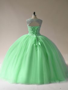 Trendy Sleeveless Tulle Floor Length Lace Up Sweet 16 Dresses in with Beading