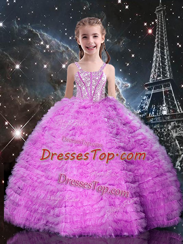 Trendy Straps Sleeveless Lace Up Girls Pageant Dresses Lilac Tulle