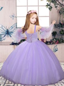 Trendy Straps Sleeveless Tulle Girls Pageant Dresses Beading Lace Up