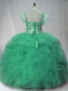 Trendy Sweetheart Sleeveless Quinceanera Dresses Floor Length Beading and Ruffles Green Tulle