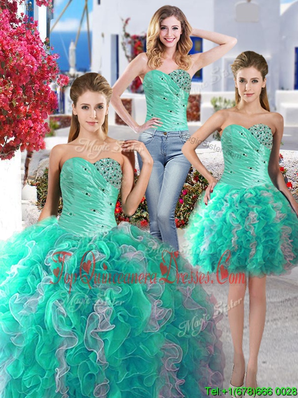 Trendy Three Piece Sleeveless Lace Up Beading 15th Birthday Dress