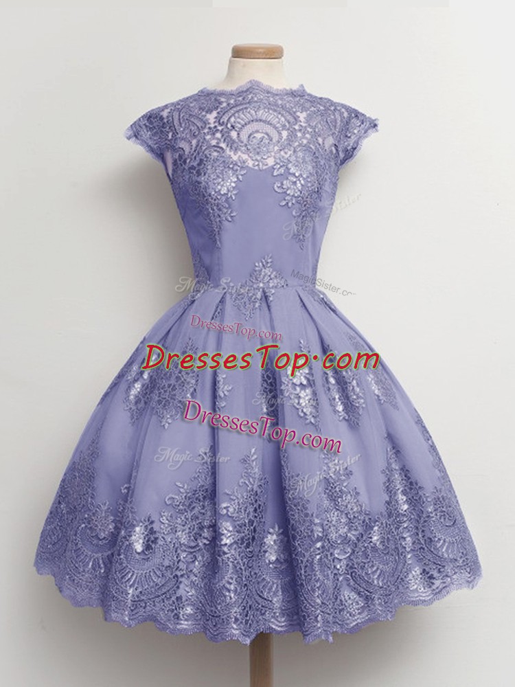 Trendy Tulle Cap Sleeves Knee Length Vestidos de Damas and Lace